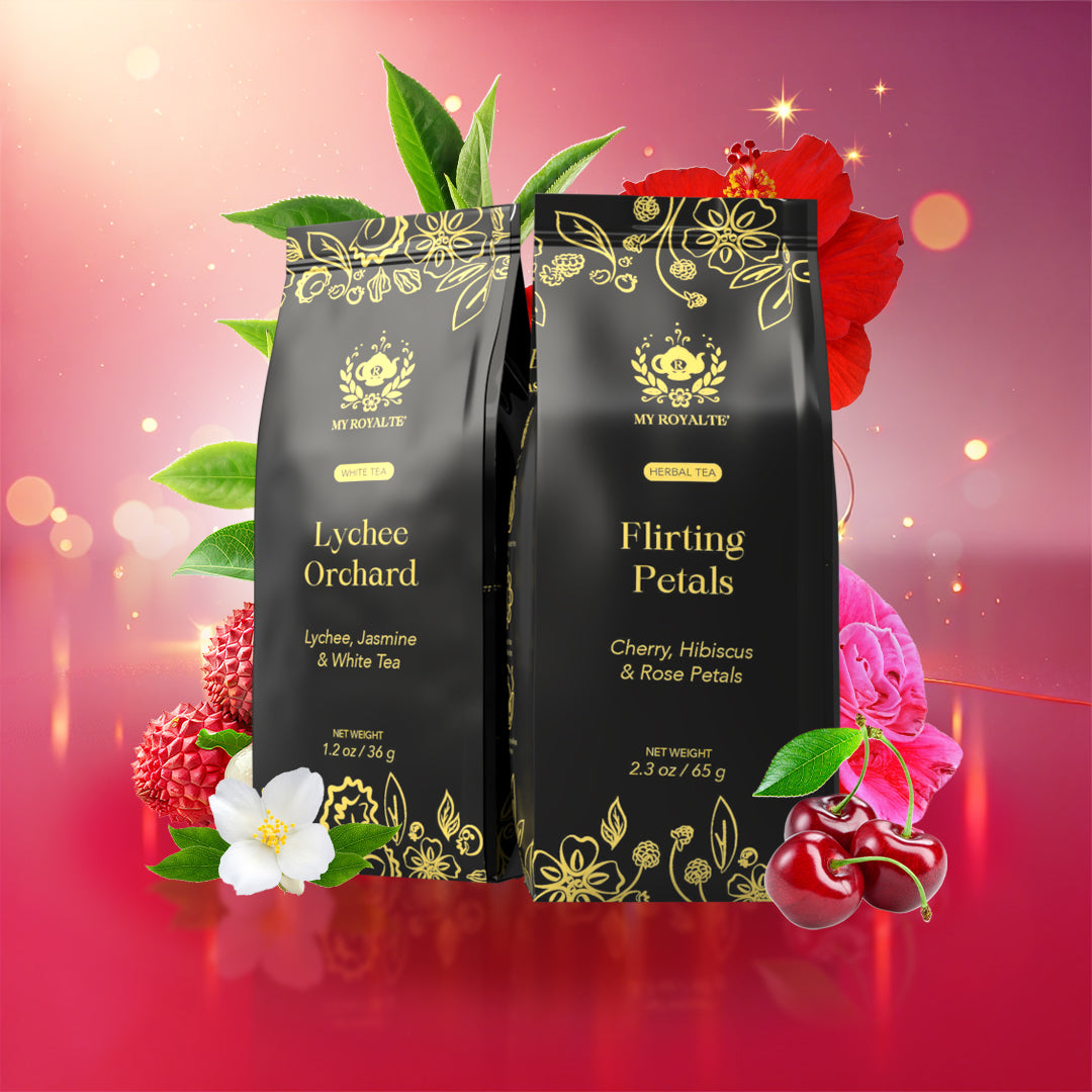 - 🌸 Sweet Lychee Fruit Tea: A delicate white tea infused with the tropical sweetness of lychee and the floral elegance of jasmine, perfect for a calming escape.