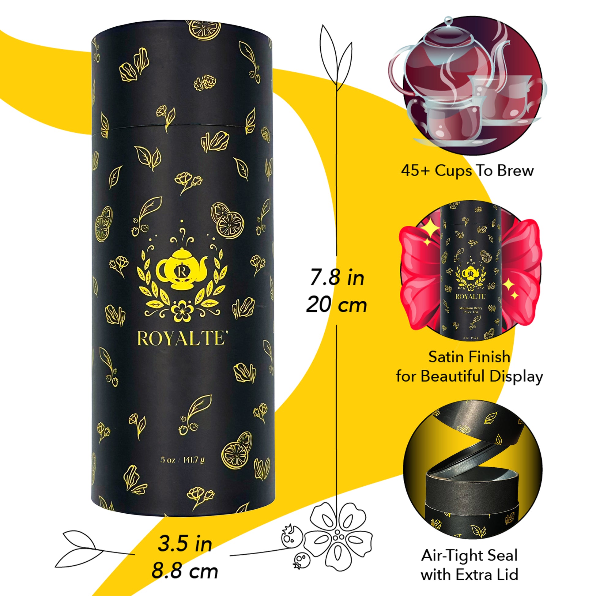 ⚜️ Beautiful Packaging: Packed in a beautiful tin, safely tucked with a metal lid under a cap and a safety seal. The package design of this organic black tea is made with a vacuum lid to preserve a taste and smell of citrus and chocolate.