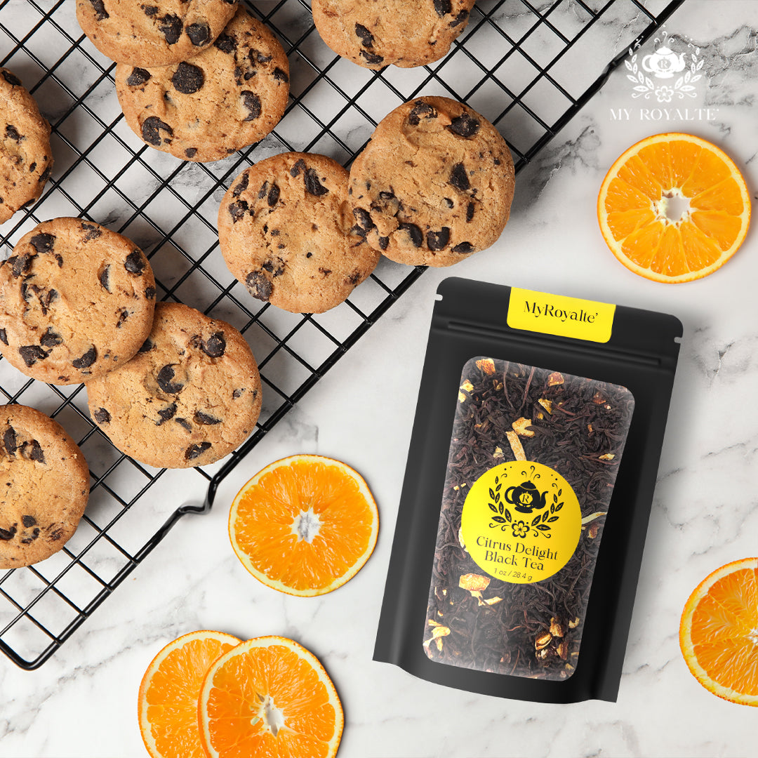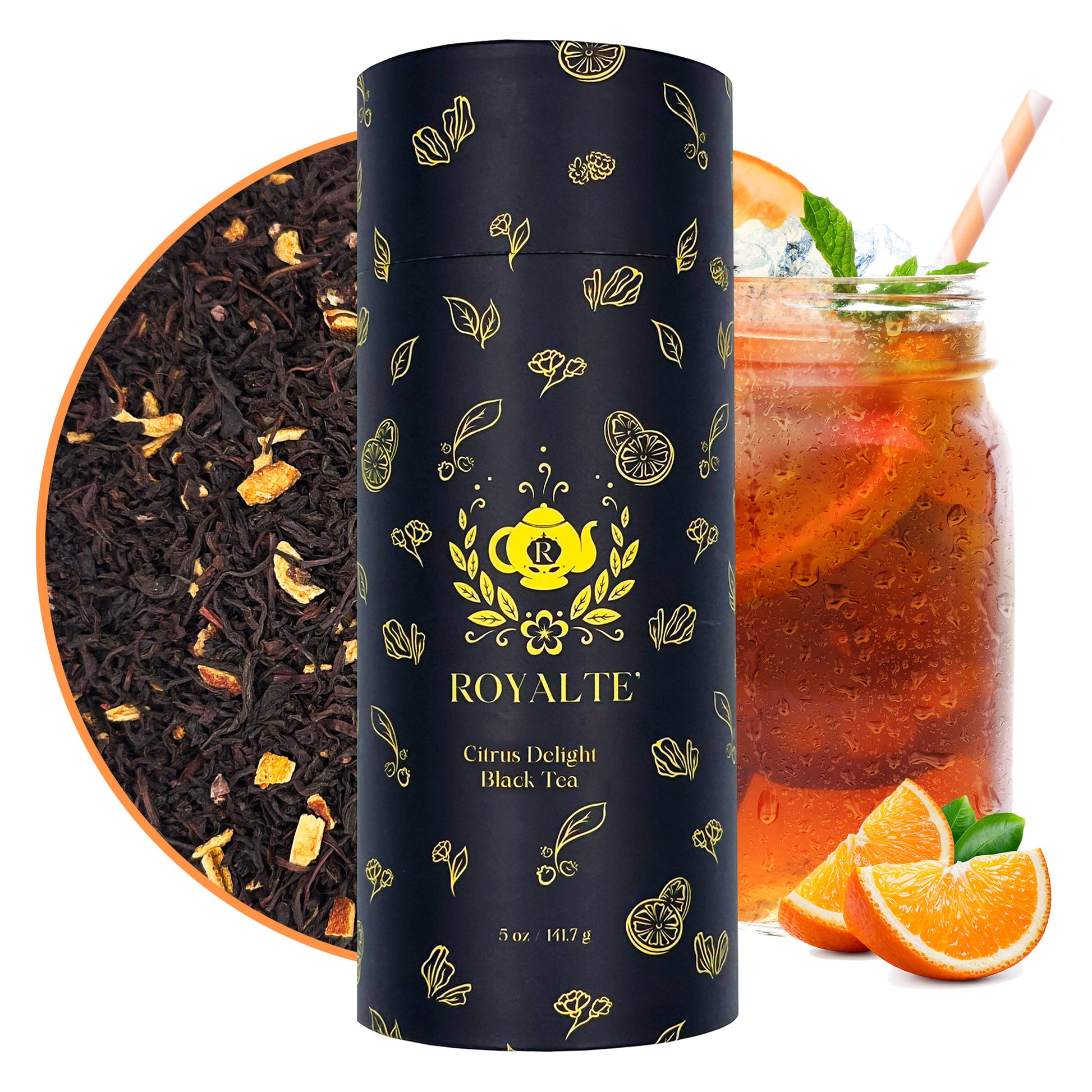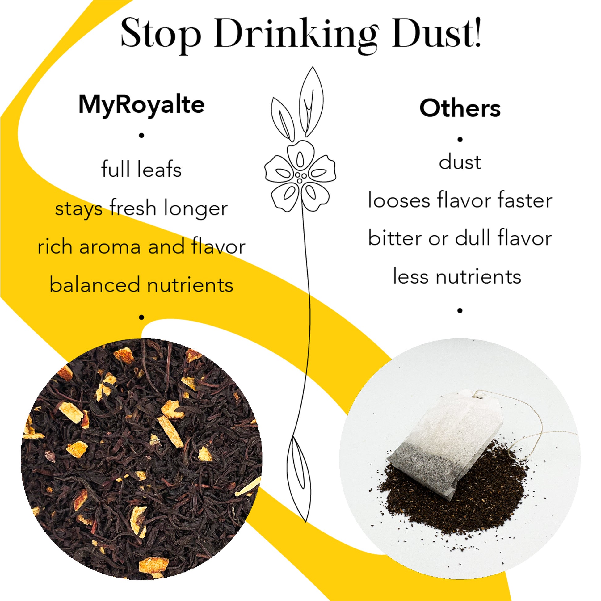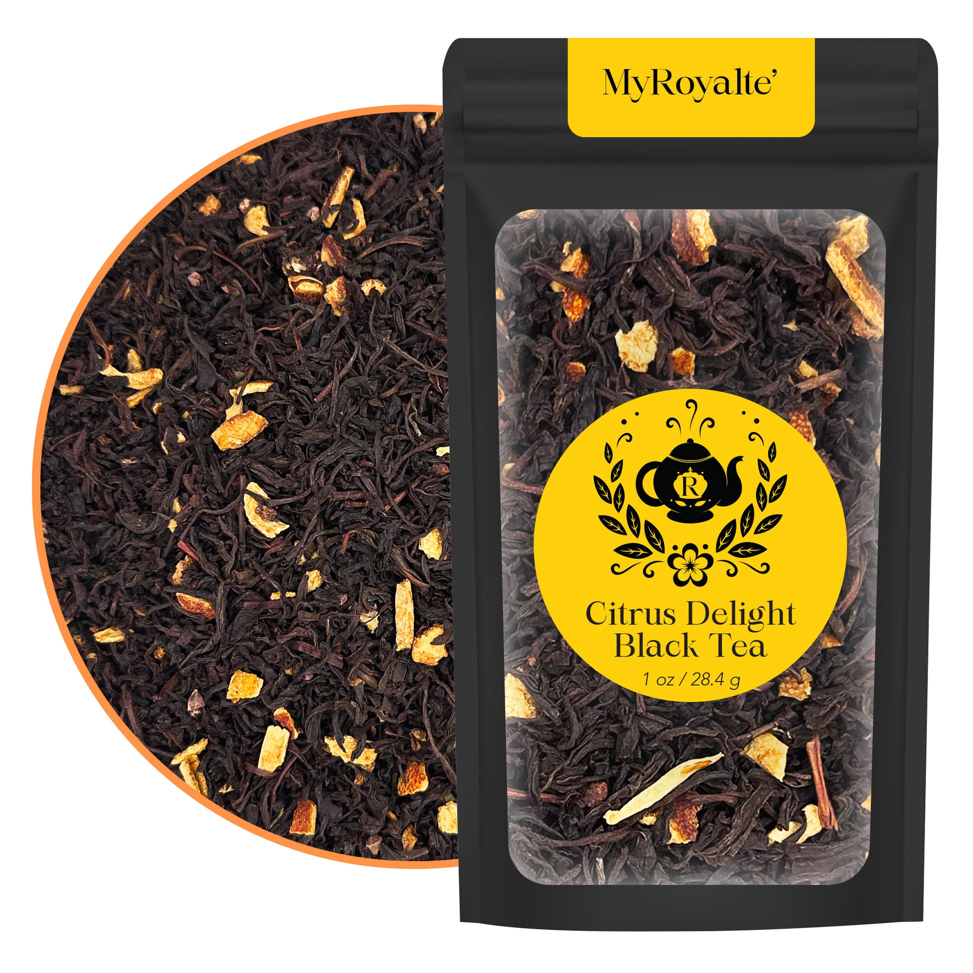 🍫 Original Blend: A quality black tea leafs with a blend of freshly dried orange peel and roasted cocoa nibs makes MyRoyalte Citrus Delight - an excellent tea. This unique blend is flavorful, smells of sweet dessert, yet has zero calories and zero sweeteners.